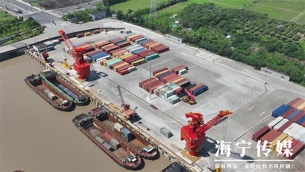 In the first half of this year, Haining's Jiashan Port saw significant growth in container throughput. From January to June, the port's sea-river intermodal transport exceeded 90,600 twenty-foot equivalent units, an 18.01-percent increase year-on-year.