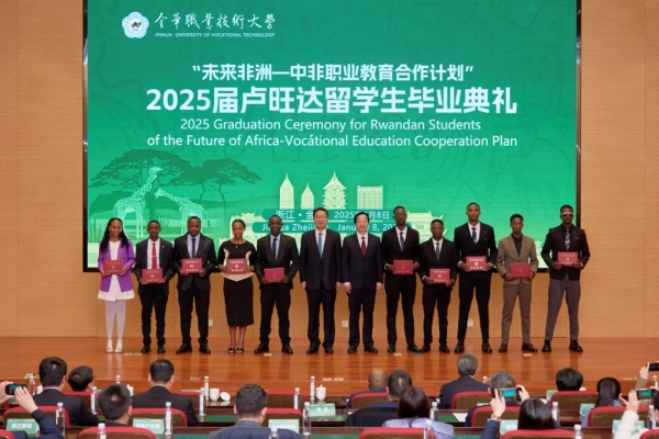 The 2025 Graduation Ceremony for Rwandan Students of the Future of Africa-Vocational Education Cooperation Plan took place on Jan 8 at Jinhua University of Vocational Technology in Jinhua, Zhejiang province.