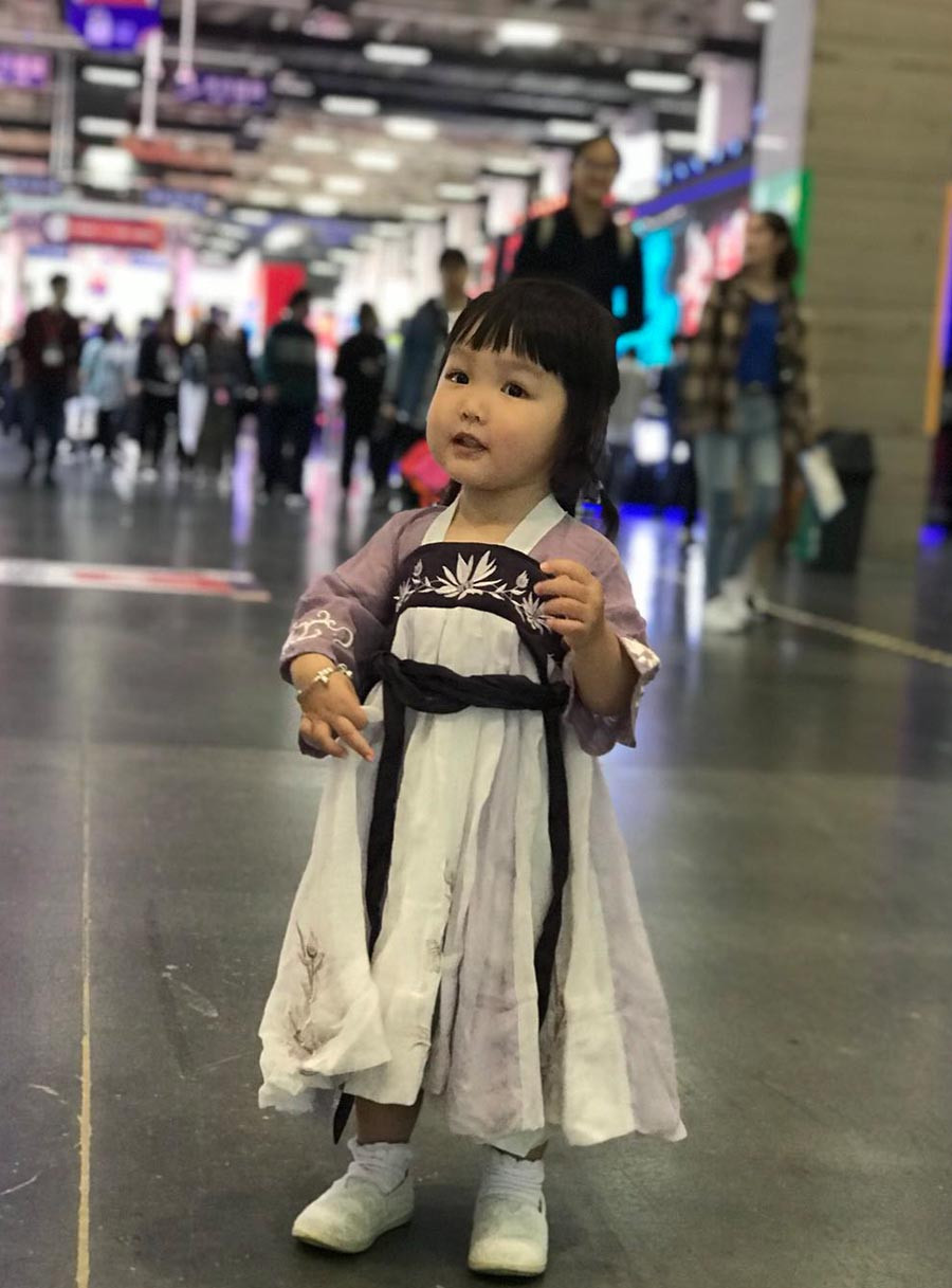 A 2-year-old girl wears an ancient Chinese-style skirt to accompany her comics fan mother to the 15th China International Cartoon & Animation Festival. [Photo by Xu Fan/China Daily]