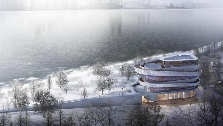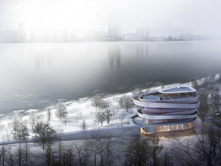 The new Hangzhou Qiantang River Museum, located at the junction of the Beijing-Hangzhou Grand Canal and Qiantang River, is the junction of Hangzhou's most important rivers. Covering an area of 11,000 square meters, the museum overlooks the rivers converging here and faces Century Lotus. The whole building is in the shape of "swirling tide" as if the Qiantang River and the Grand Canal converge here and then spiral into the air. The shape not only represents the continuous running of the Qiantang River but also embodies the Zhejiang spirit of "sailing through waves".