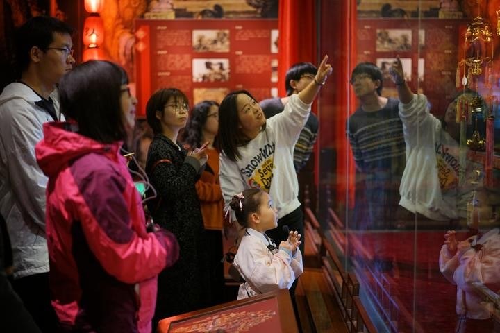 Zhang is trained to memorize the stories of the exhibits. Though with still limited vocabulary, she can explain to visitors fluently in two languages as a result of practice.