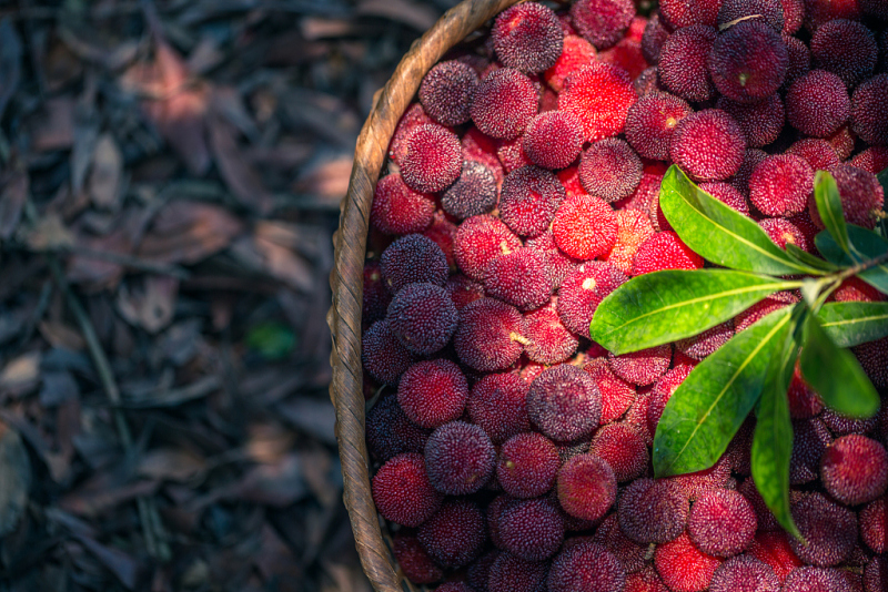 The sweet-tart Chinese bayberry (Chinese: 杨梅) is one of the most popular fruits in southern China.