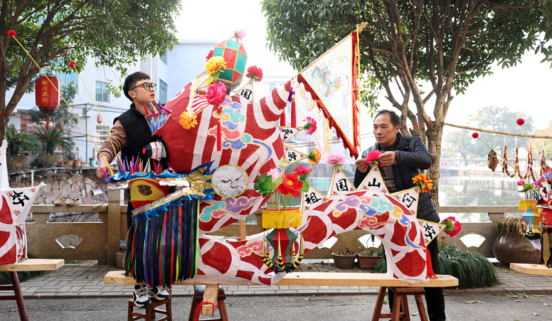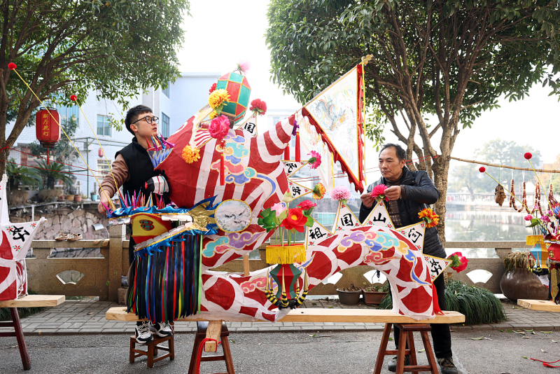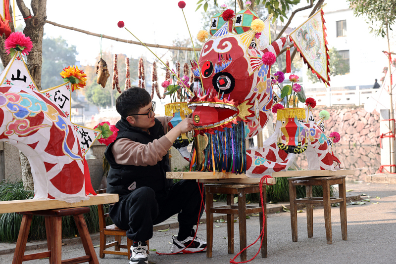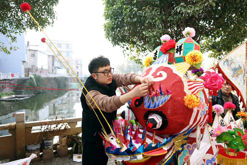 Intricate craftsmanship in Dongyang, east China's Zhejiang Province has harnessed the community spirit of locals to prepare for a vibrant Spring Festival celebration in less than a month.