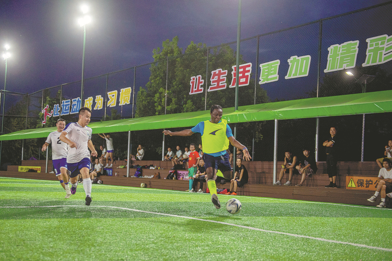 Brown plays a soccer match in Changping village, Changxing, on Aug 7. (Photo/TAN YUNFENG/FOR CHINA DAILY)