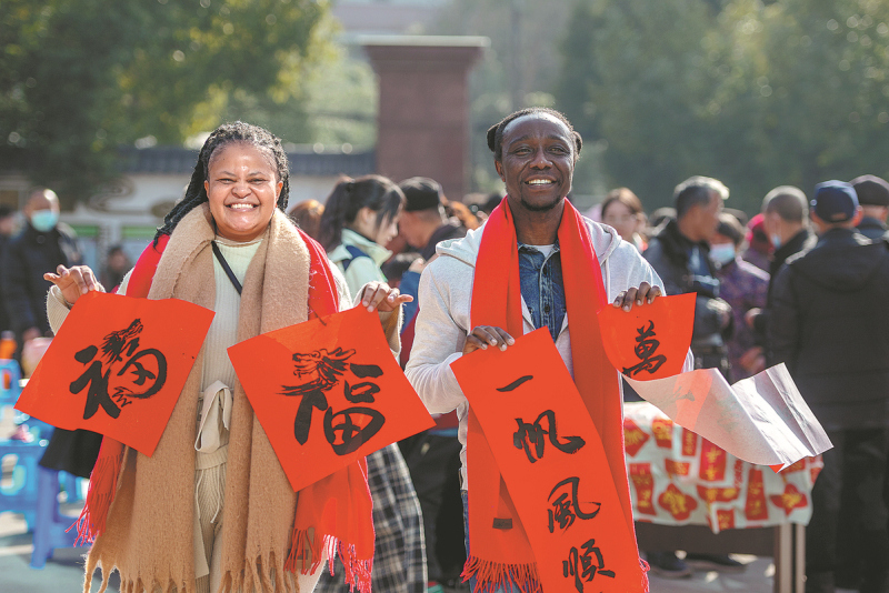 Brown participates in a folk fair held in the Gaojiadun community in Changxing on Jan 11.(Photo/CHINA DAILY)