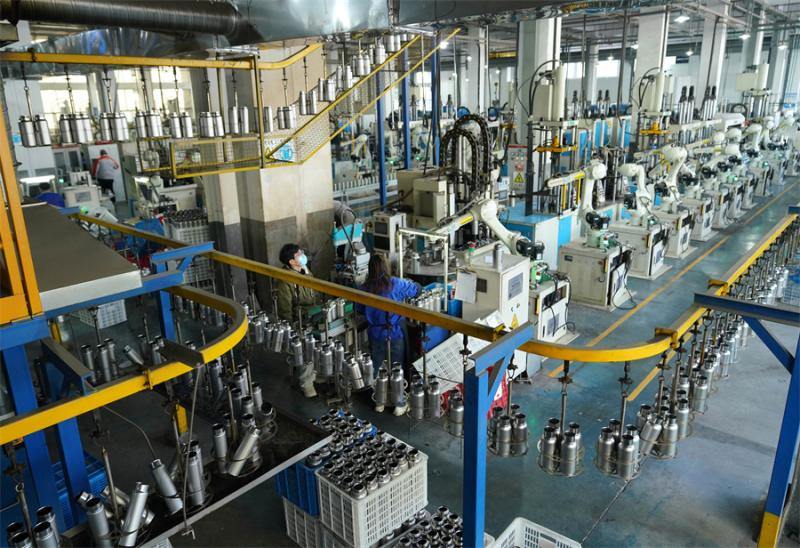 Staff members work at an enterprise's automated production line in Yongkang, Zhejiang province, on Dec 21, 2023. (Photo/Xinhua)