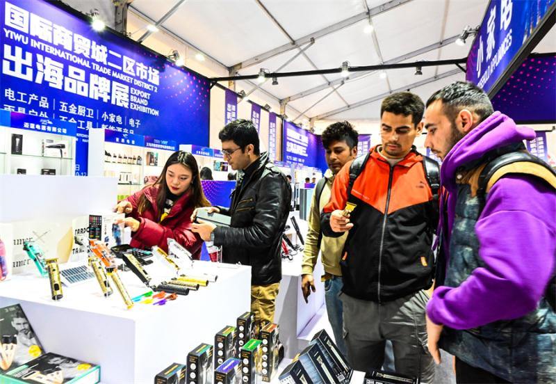 Foreign businessmen purchase small household appliances at Yiwu International Trade Market, in Yiwu, Zhejiang province, on Dec 10, 2023. (Photo/Xinhua)