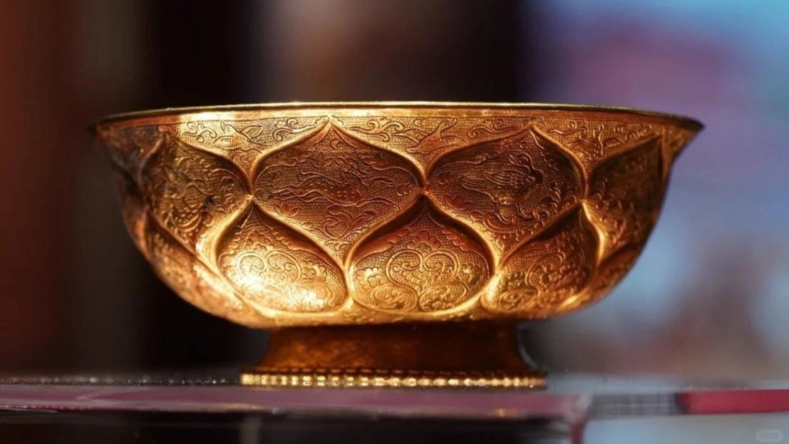 Among them, "Golden Bowl with Mandarin Duck and Lotus Petal" from the "Nine Heavenly Palace: Chang'an on the Silk Road" exhibition from the Tang Dynasty (618—907) is undoubtedly the most popular attraction. This golden masterpiece embodies the pinnacle of ancient Chinese craftsmanship, where every lotus petal is a canvas for intricate decorative patterns. The upper layer bursts with life, adorned with intricate motifs of mandarin ducks swimming in harmony, ducks paddling gracefully, parrots perched majestically, and foxes sneaking through the foliage. The lower layer, meanwhile, showcases delicate honeysuckle designs, weaving a natural beauty that complements the lively animals above. Even the tiniest spaces between the lotus petals are not left untouched, adorned with flying birds and swirling cloud patterns that add a sense of movement and dynamism.