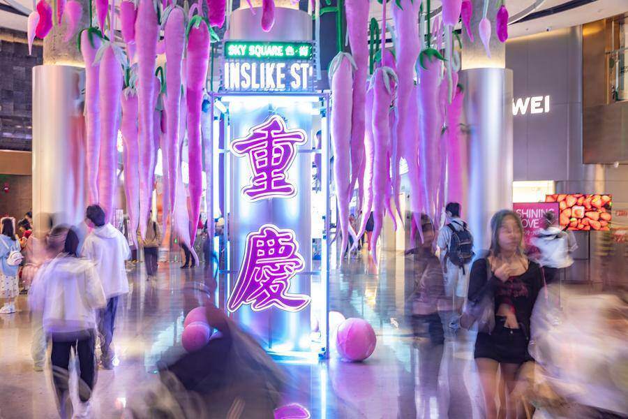People visit a shopping mall in southwest China's Chongqing, on May 4, 2024. (Xinhua/Huang Wei)