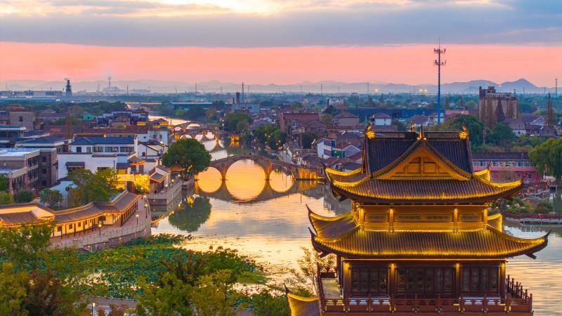 The three bridges create a picturesque scene amid the sunset glow on Nov 7. [Photo/IC]