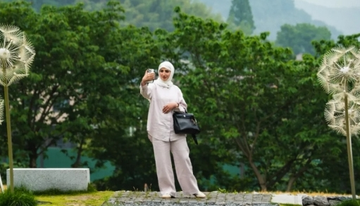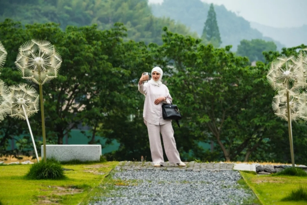A visitor from Qatar takes photos of the beautiful scenery in Yucun village in Anji. [Photo/WeChat account: anjifb]