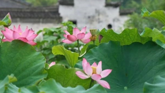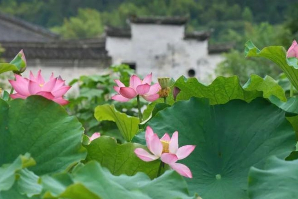 Pink and white lotus flowers adorn layers of leaves, adding a touch of romance to this ancient village. Each summer, the Heyang ancient residential area becomes a popular lotus-viewing destination, attracting numerous tourists to take photos.