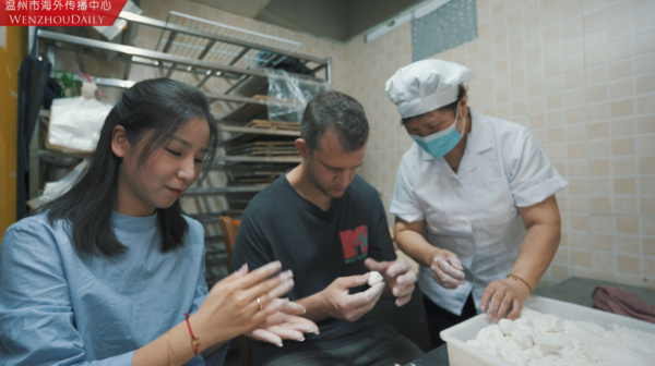 "I can smell the fragrance all the way away." Alex, a British anchor, and Zhang Ci, a lecturer from the School of Foreign Languages of Wenzhou University, talked with each other in a jovial mood and expectantly opened the door of the Xianqian Tangyuan Store in the urban area of Wenzhou. This is a scene that happened during this episode’s video-filming.