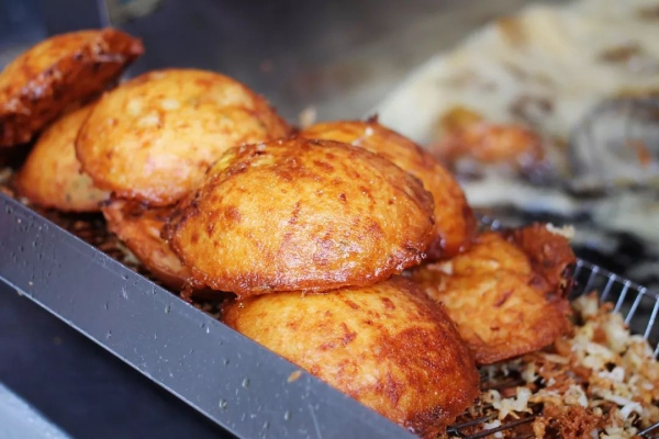 Dengzhan cake (deep-fried white radish cake) is one of the top 10 famous snacks in Wenzhou. It has a long history and can be traced back to the end of the Yuan Dynasty and the beginning of the Ming Dynasty (around the 1460s). Because its shape resembles the ancient oblate oil lamp, it gets the name "Dengzhan Cake". Generally, it is made by grinding rice and soybeans into a thick paste, adding flour, wrapping shredded radish, eggs, meat as fillings, and deep-frying. The Dengzhan Cake tastes best when it is just taken out of the oil pot. So crispy and crunchy, it tastes tender and smooth when you take a bite of it. Your month is inundated with egg scent. How delicious it is. Dengzhan Cake (deep-fried white radish cake) was included in the Wenzhou Intangible Cultural Heritage List as a traditional Yueqing snack making technique on January 10, 2014.