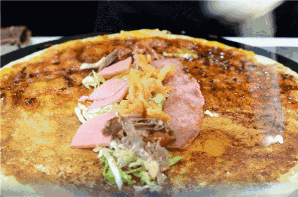 Chinese-style omelette wrap is a kind of pancake made of wheat and grain paste. It is usually added with egg liquid, sausage, bacon, lettuce, and other materials according to personal preference, and then applied with a thick sauce, sprinkled with some chopped green onion. The making process takes a few minutes. Chinese-style omelette wrap is a famous snack in Tianjin, Shandong, and other places in China. Especially in Tianjin, it has a history of 600 years.