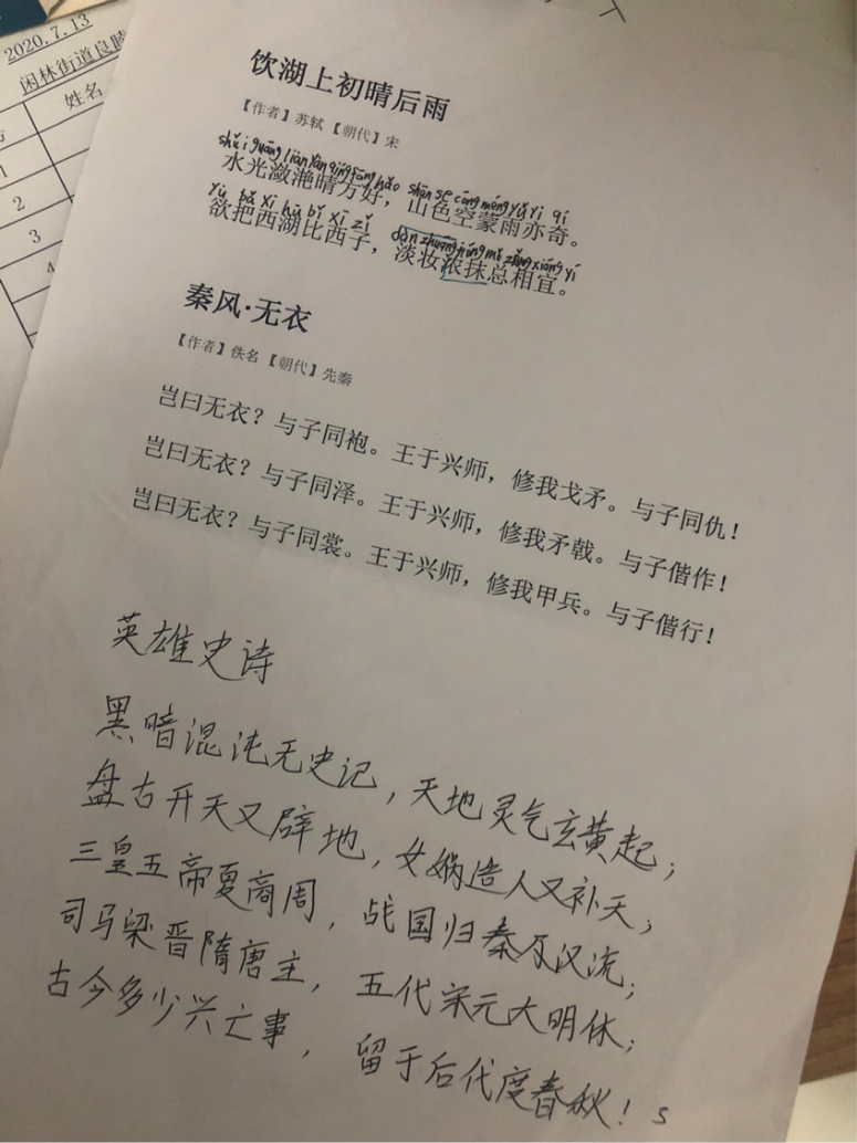 (The lyric paper with Chinese pinyin on it)