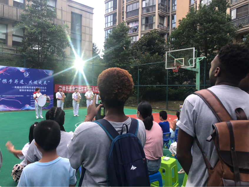 When the night has fallen, bright lamps lit up the basketball court and added a fiery atmosphere to the upcoming art performance. Residents and foreign students arrived on time, and the site was soon full of people. At 6:30 p.m., the performance kicked off with a strong vibe of the Chinese community culture.