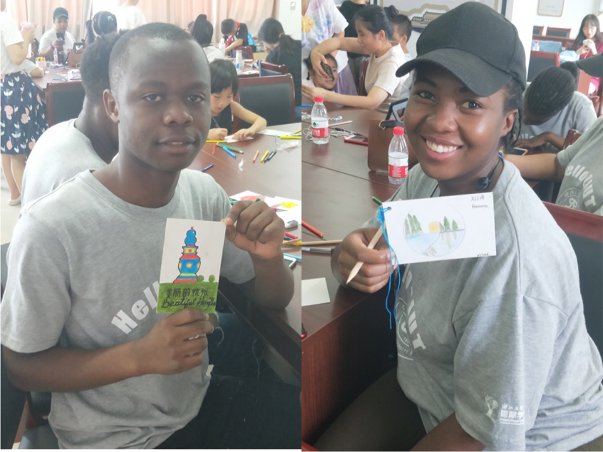 "It was a good experience. A little boy whose name is Zhang Zihao sat next to me and finished his drawing before mine. I kept on looking at his drawing because it was eye-catching," said Paidamoyo Saziya, a Zimbabwean student. "I can further say that this activity also made us be interactive with these children, for we have exchanged the drawings and explained to each other what was in the drawings."