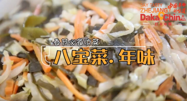 Eight-treasure pickles or ‘Babaocai’ in Chinese, is a must-have dish for the dinner of Spring Festival in Zhejiang. This kind of dish includes different kinds of vegetables and other ingredients with well-cooked sauce, which is very delicious.