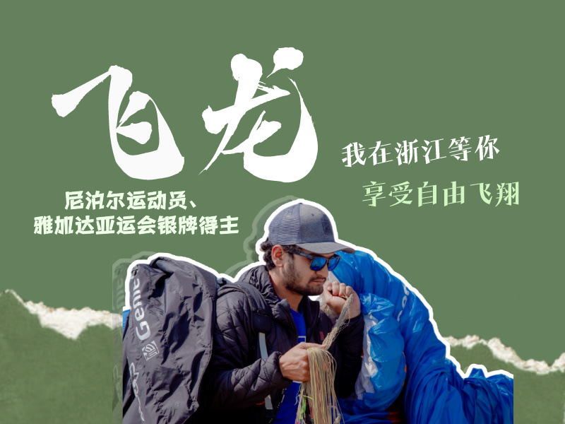 Bishal Thapa, professional paragliding pilot from Nepal, settled in Mogan Mountain of Deqing, Huzhou city, Zhejiang province. They host a hostel and Thapa continues his profession nearby.