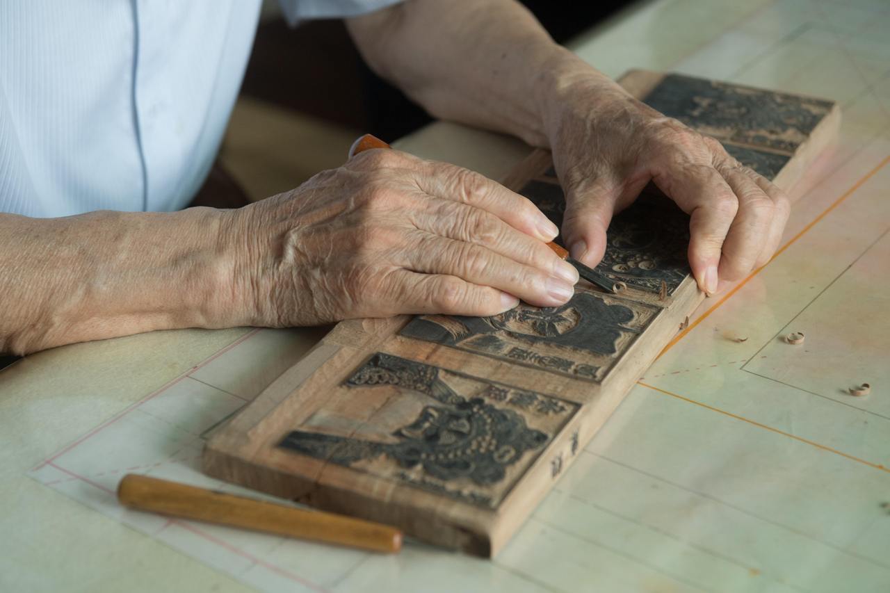 Woodblock printing is not easy on rice paper. Once damp, the paper does not hold the moisture very well. The printing process must be handled with extreme care or the paper can be damaged irrevocably. Different colors need repetitive printing. To print a perfect black, the paper needs to be printed and reprinted eight times altogether. Lu Fang has experimented and perfected and mastered his techniques. He says, “Western artists prefer metal and pigments in printmaking whereas in China artists prefer wood and water. Some prints can be reproduced on a machine at fast speed. Woodblock printing must be made manually one by one. A woodblock printmaker must rely on his hands.”