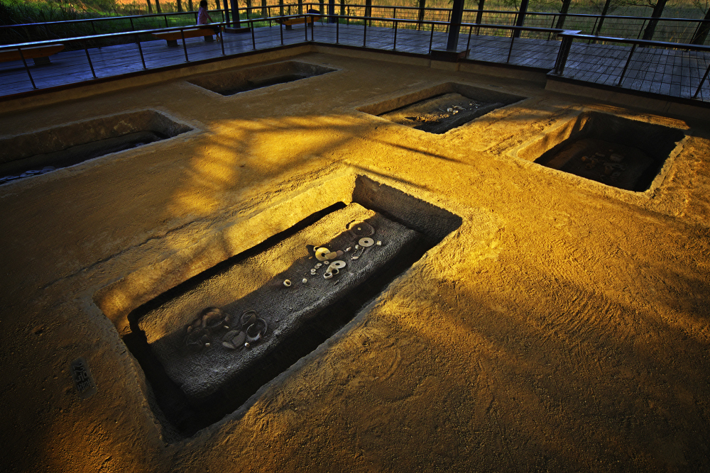 An excavation project conducted at the Yujiashan Site locates a string of six settlements in close neighborhood, respectively surrounded by moats. It is believed that the settlements reflect the essential social structure and individual members of a community and that the six settlements represent six related clans.