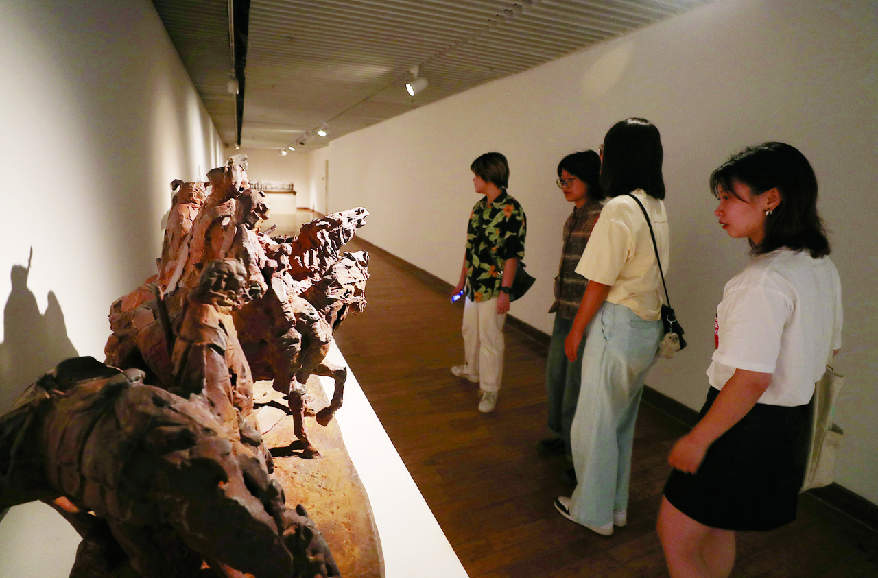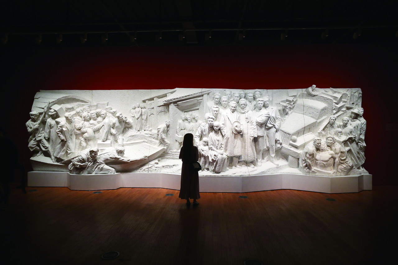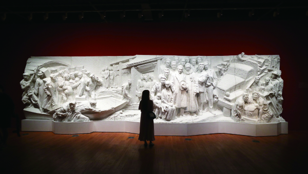 Another eye-catching exhibit was a huge relief called , created by teachers and students of the Sculpture and Public Art School, China Academy of Art. It was created in 2018 in celebration of the 90th anniversary of the founding of the academy. China’s war of resistance against Japanese aggression broke all out on a full scale in 1937. In November 1937, the National Hangzhou School of Art set out on a westward journey to the inland in order to escape Japanese aggressors. It was not until October 1946 that the school came back from the exile and resumed its operation in Hangzhou. The enormous relief depicted a group of teachers and students on their way to the west. No sooner had the artists of today completed the first relief than they expanded the original initiative and started a series. Altogether ten have been created. Only one of them was on display at the exhibition.