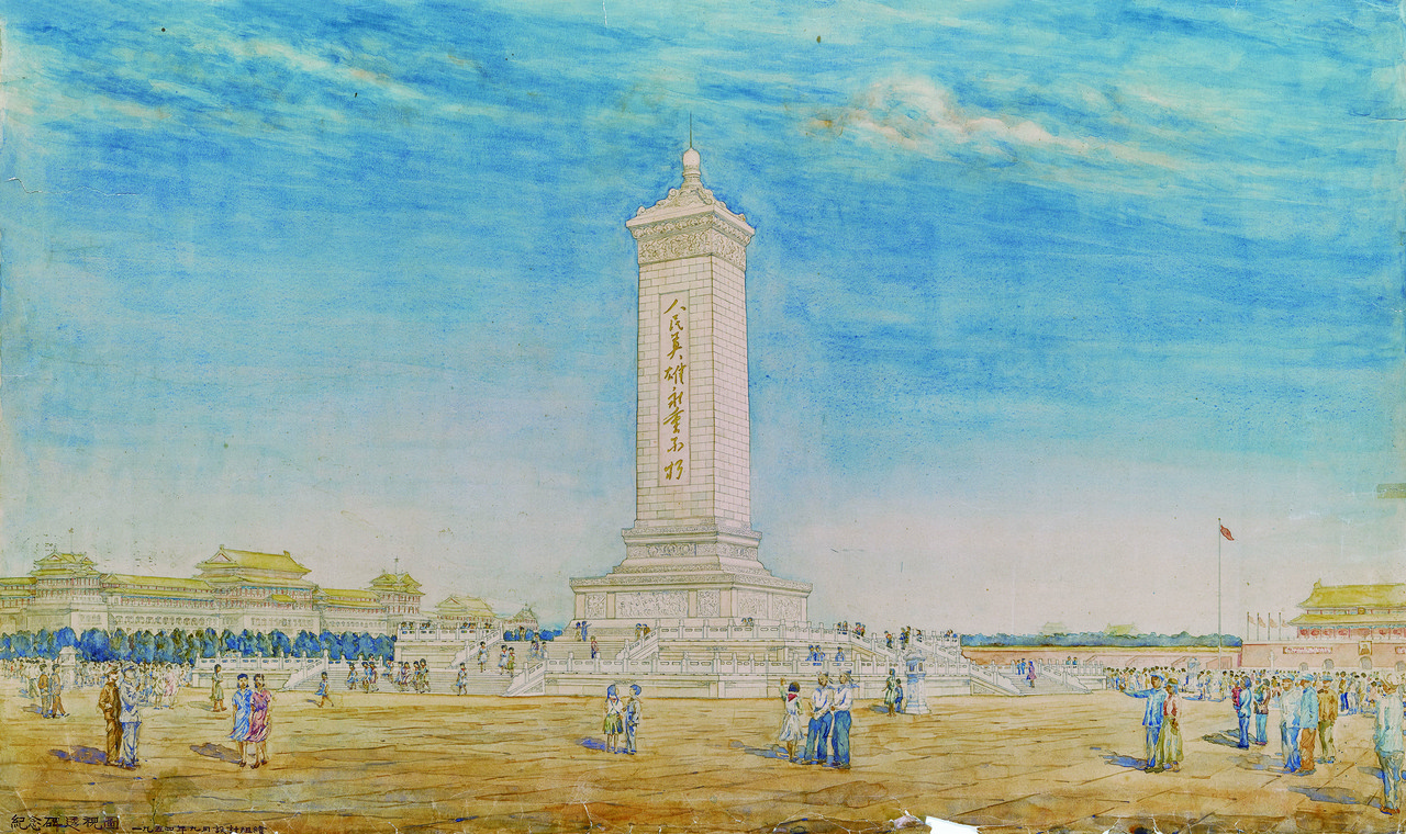 在此次展览的所有艺术作品中,这一批为建造人民英雄纪念碑所征集的设计手稿原件颇为珍贵,这些设计稿来自全国各地的建筑院所,均以佚名的形式呈交。