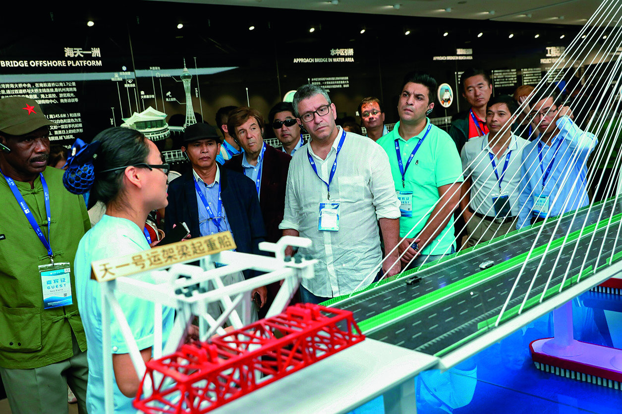 建造这样一座大桥,在海中如何打桩成了采风团中每个人心中的疑问。走进海天一洲大桥展示馆,首先映入眼帘的是这样一句话:“这是一座跨越梦想的大桥。”马斯洛·戈多伊感叹,“每个人一生中必须来这里打次卡,很值得。”