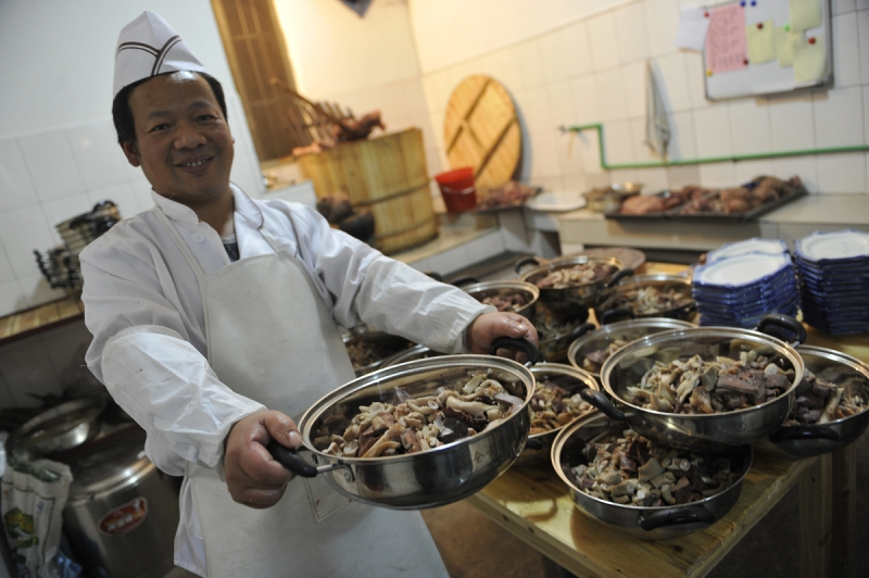 Zhang Ziwen, an 86-year-old resident of Bolu Town, has been cooking mutton for more than 60 years. When he was younger, he was engaged by some restaurants in Hangzhou to prepare mutton. He is still proud of the work experience in the big city. He has published a recipe for mutton dish in a local newspaper. He learned the recipe from his father-in-law and has passed it on to his son, daughter and son-in-law. Nowadays, his grandson and granddaughter are operating family’s mutton restaurants, one in Linping and one in Hangzhou. In fact, there are many good mutton chefs working in restaurants in the canal neighborhood of Linping. Some younger chefs even sell mutton dishes online.