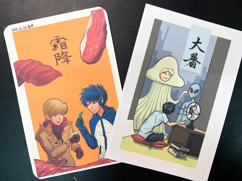 The highlight of the gathering was a set of hand-drawn postcards given by a Japanese student to me as a gift. The theme of the postcards is Chinese solar terms, which is also what I chose as the gift for my Japanese friends. The coincidence felt beautiful and meaningful.