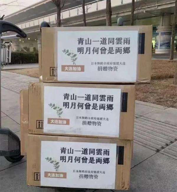 On some cartons was printed 山川异域, 风月同天 (One translation reads “Lands apart, sky shared”. Another reads “The destiny will finally bring us together, because we share the same sky”). This is part of a poem penned by Prince Nagaya of Japan in the 8th century. The prince had the poem embroidered on 1,000 Buddhist kasaya robes as gifts to China. The Japanese prince’s poem is in , the largest existing collection of Tang poetry which was put together in the Qing Dynasty (1644-1911). Another message is岂曰无衣, 与子同裳 (One translation reads “Fear not the want of armor, for mine is also yours to wear”), a quotation from , the most ancient Chinese poetry collection edited by Confucius (551-479BC) more than 2,500 years ago.