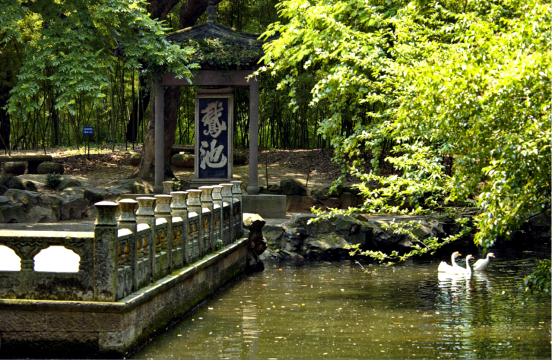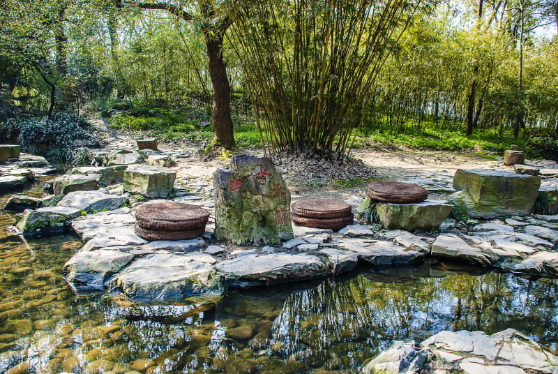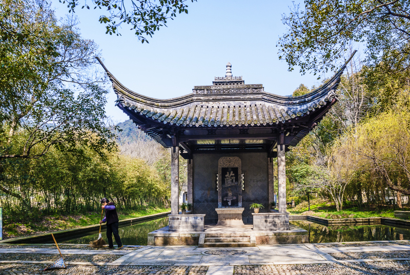 Lanzhu Hill boasted a nursery where King Goujian had orchids cultivated there more than 2,000 years ago. Then a defeated king living as a subject to the King of Wu State, Goujian submitted orchid flowers to the court of the Wu State. Now Lanzhu Hill boasts a forest of bamboos. At the foot of the hill is Orchid Pavilion Calligraphy Museum, which covers an area of more than 6,000 square meters. The museum has a large collection of works by calligraphers of yesterday and today. Exhibitions are held there at regular intervals. Orchid Pavilion also hosts a spring-day ceremony to honor the original gathering in 535AD.