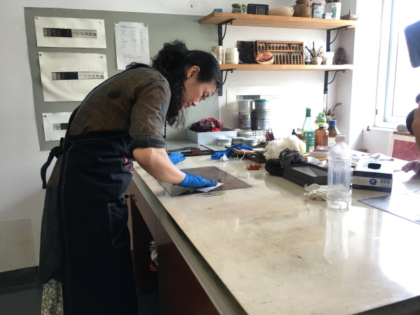 Whether the woodprint of Lady Silkworm in the collection of the museum was printed in Wenzhou is unknown, but Wenzhou does have at least one master who carries on an ancient woodprint technology. The 63-year-old Wang Xunqiao is a master of movable-type printing and woodprint. He is a native of Dongyuan Village where the ancient movable-type printing technology is still alive. In Rui’an, a county-level city of Wenzhou, there are eleven such masters who still use the technology to print genealogy books for local clans. Of the eleven, Wang is the only one who is also a master of woodprint technology. At 18 he began to study the movable-type printing under the guidance of his great uncle. After he got married, he studied the woodprint technology from relatives of his wife’s family. Woodprints he learned and mastered include some prints and “hell money” largely burnt in folk ceremonies. The woodprint technology was first carried to Rui’an from Fujian in the 17th century and was inscribed onto the list of intangible cultural heritage of Zhejiang Province in 2014.