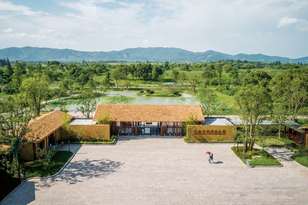 Standing in the Outer City of the ruins, the site of the ruins is more akin to a wetland park. In fact, it is generally referred to as a park, an archeological park, more specifically, and the development of the park follows the principle of “protection first and foremost, and archeological work trumps everything”. Therefore, only a handful of buildings can be seen on the ruins. Relying on the original water conservancy system that has been later treated, a comprehensive wetland system has been restored. Now, the park is densely forested, with crisscrossing rivers and crooks, in which water plants grow with exuberance. In large swathes of land is also planted rice, to demonstrate unique features of the rice-cultivating agriculture of the Liangzhu culture as its economic base. Indeed, the rice fields have drawn a multitude of rare birds to settle as their habitat.