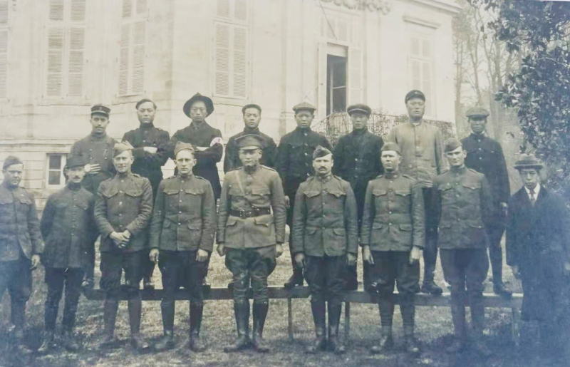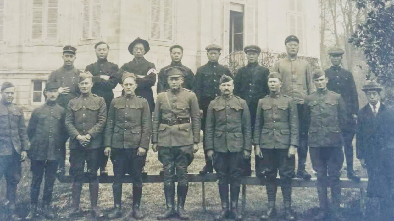 Zhu Guisheng (fourth from right, second row) during World War I. Photo taken in 1917