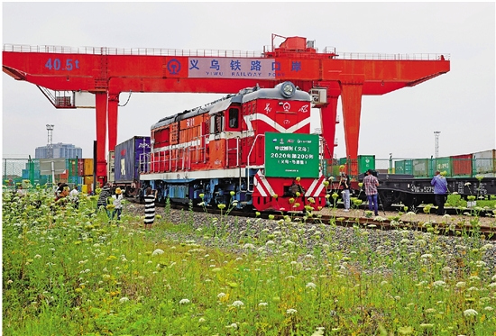 On May 31, X8020 Madrid-Yiwu Train loaded with 100 standard boxes of epidemic prevention materials, living materials and general merchandise departed from Yiwu west railway station to the capital of Spanish--Madrid, 13,000 kilometers away. This is the 200th Madrid-Yiwu Train that runs this year. By the end of the day, 16,672 standard boxes have been shipped by the trains, up 72% year on year.