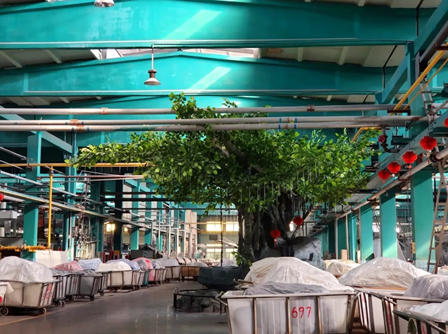 The factory of Zhejiang Baofang Printing and Dyeing Co., Ltd., which is located in Ma'an Street, Keqiao District, Shaoxing city, is like a "big garden".
