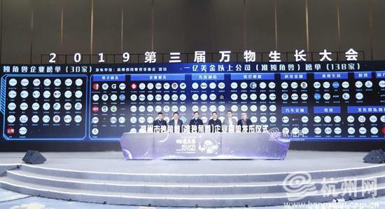 The Hangzhou unicorn companies 2019 list is released at a conference in Hangzhou, capital of Zhejiang province, on March 12.