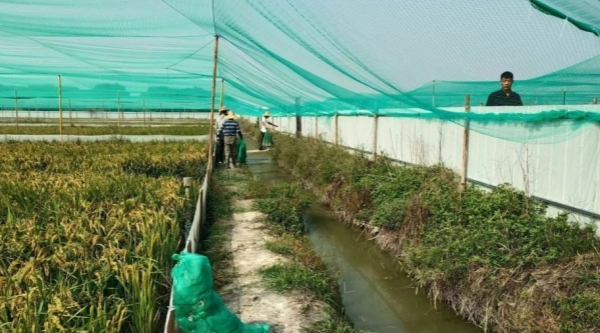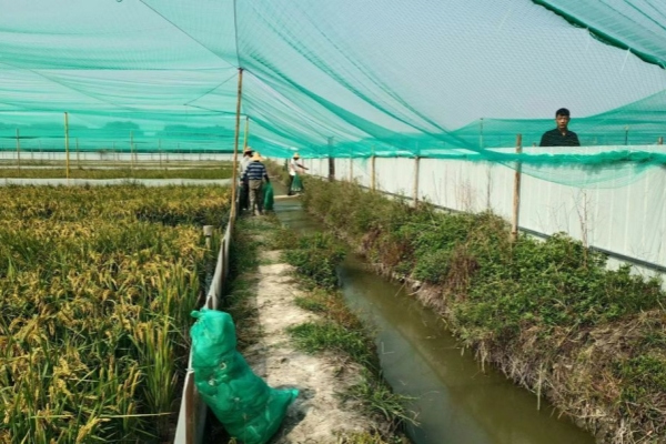 Under the rice-frog symbiosis model, the black-spotted frogs put into the rice fields feed on insects, thus eliminating the need for pesticides. Moreover, the frogs' excrement serves as natural organic fertilizer to enhance soil fertility, ensuring a conducive environment for rice growth.