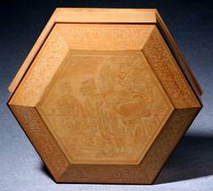 The Fanhuang bamboo carving is a traditional craft of Ningbo. In making carved bamboo ware, moso bamboos are first skin-removed and sliced, then molded and colored drawn, and finally fine-carved and lacquered.