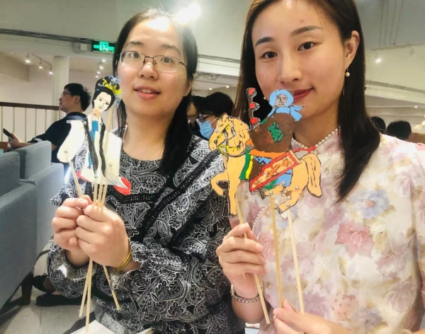 Students' works: characters of shadow puppets: Princess Wencheng (Left) and Zhang Qian (Right) (Photo/He Zhenzhen)