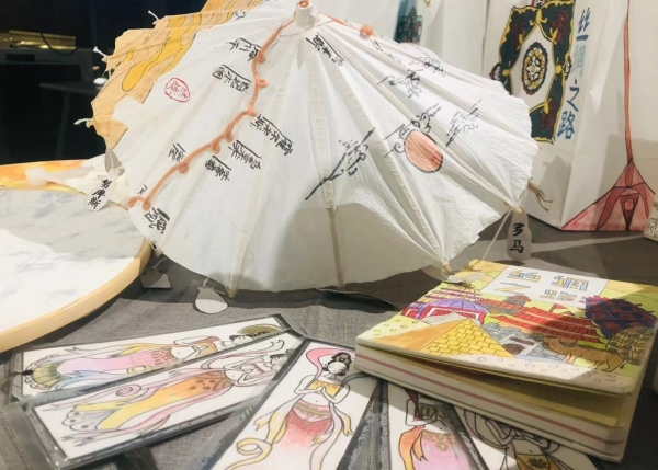 Luo Caijun, principal of Hangzhou Maiyuqiao Elementary Education School, introduced some of the student's works about silk road cultures, such as notebooks with the drawing of the representative architecture of the Silk Road as a book cover, an environment-friendly bag which is designed according to the spirit of Silk Road culture and an umbrella model with major cities along the Silk Road.