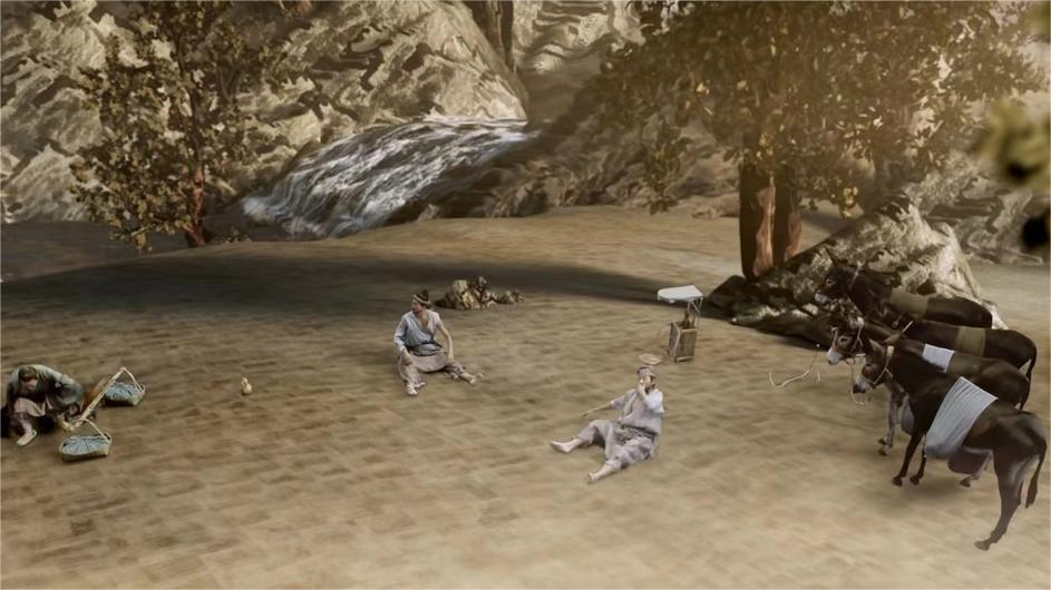 An animation showing an old man encountering a caravan of donkeys on the path.(Photo/CGTN)