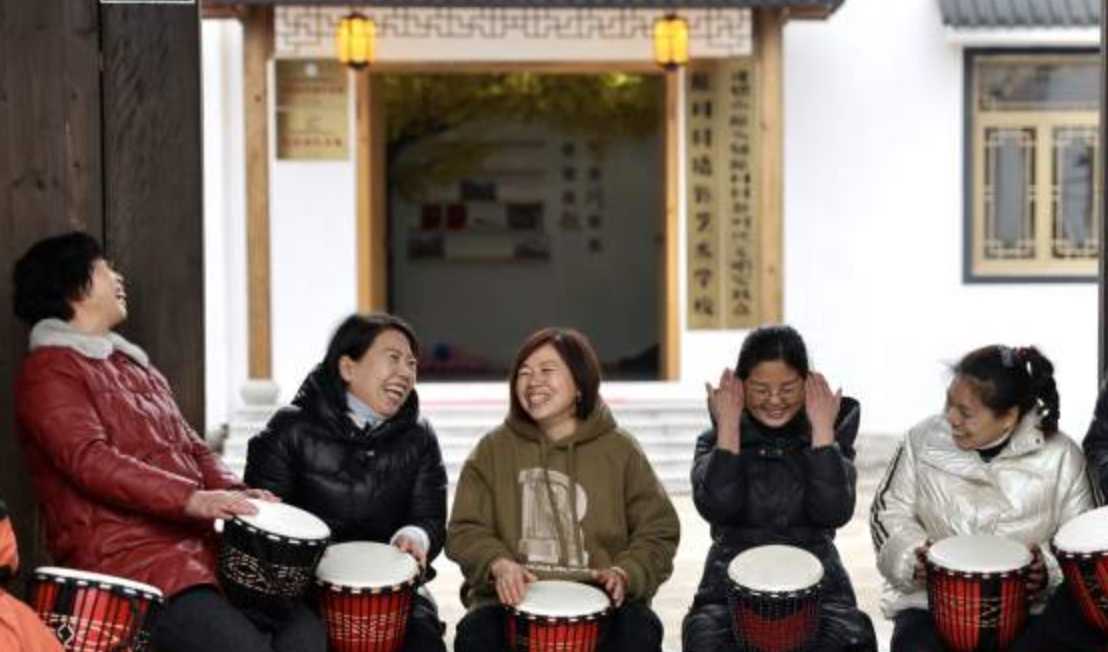 On February 7th, the new school year of Hangchuan Village Art School in Hangtou Town, Jiande, Hangzhou started. New teachers came to the school to teach four courses including Harvest Drum and Tea Art. Villagers come here to study after finishing their farm work.