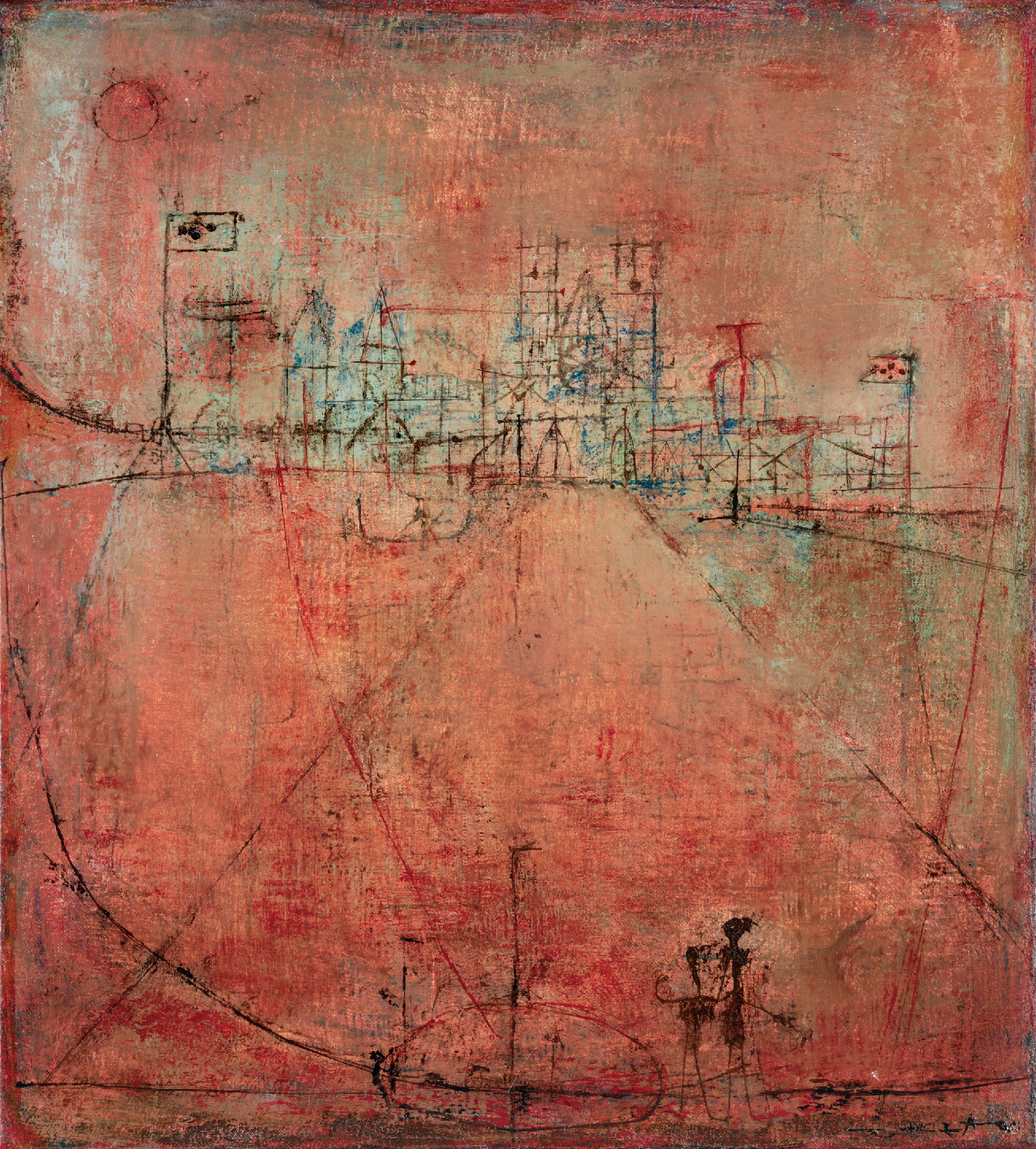 (Chinese City, 1955, oil on canvas, 54 × 65 cm, private collection. ⓒ Zao Wou-Ki - ProLitteris, Zurich, Photo ⓒ China Academy of Art)
