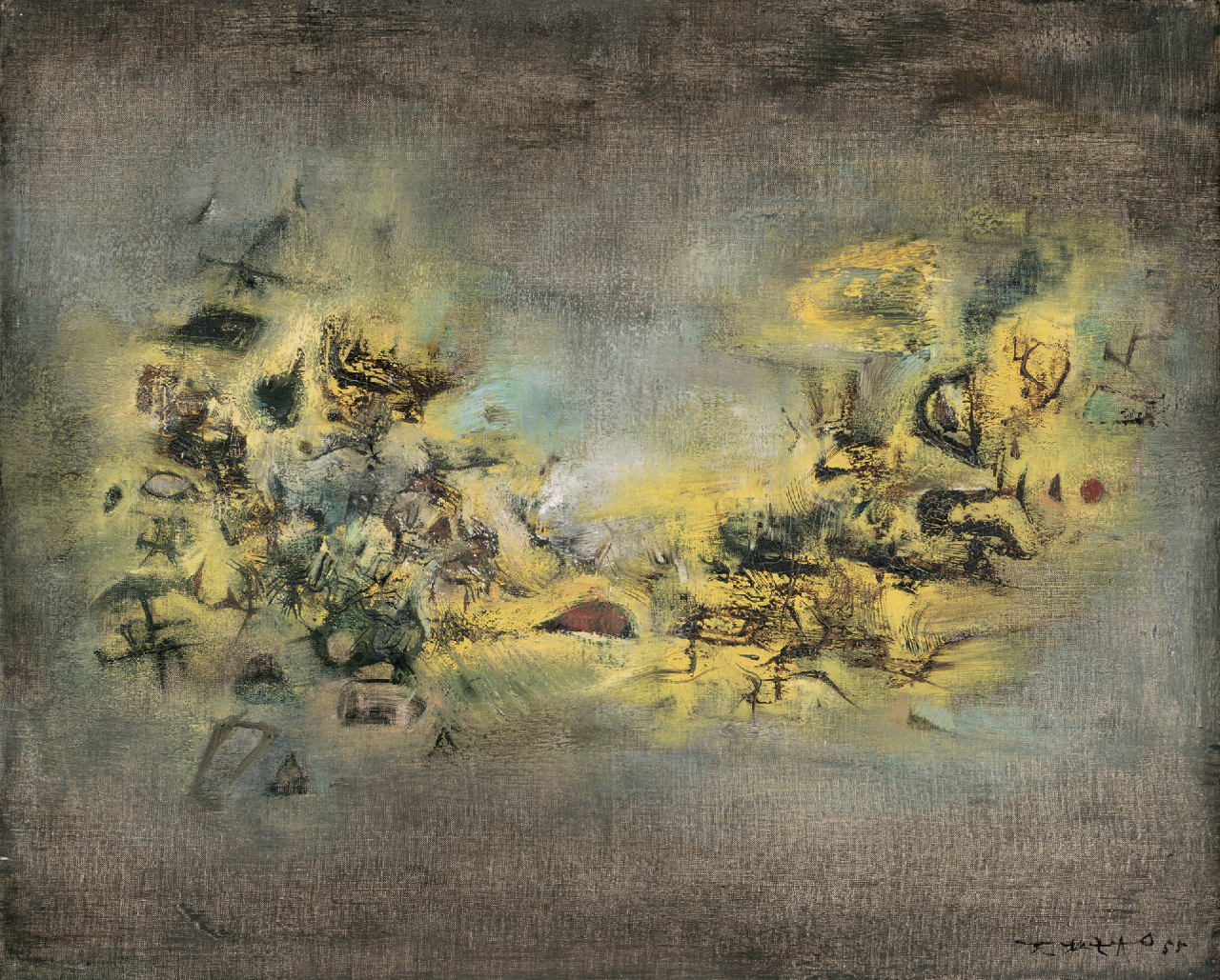 (My Father’s Garden (Jardin de mon père), 1955, oil on canvas, 38 × 46 cm. ⓒ Zao Wou-Ki - ProLitteris, Zurich, photo © China Academy of Art)