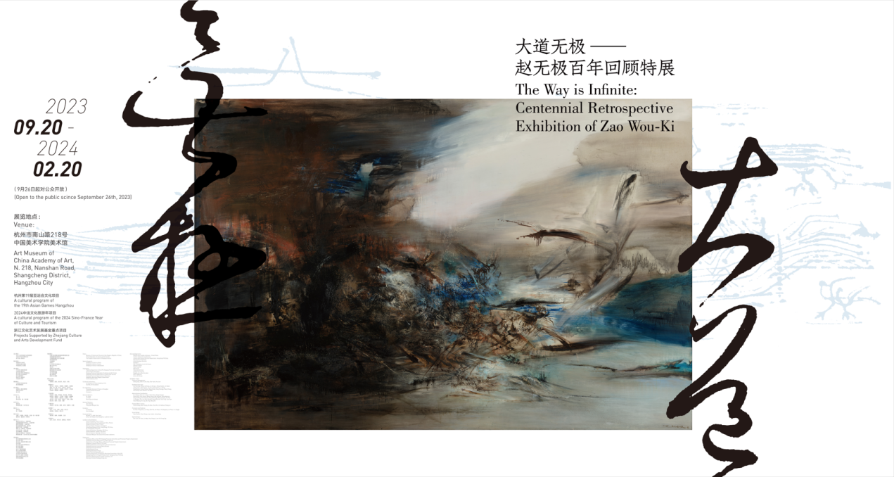 "The Way Is Infinite: Centennial Retrospective Exhibition of Zao Wou-Ki " opened on September 20, 2023 (open to the public on September 26) , and will last until February 20, 2024 at the Art Museum of China Academy of Art as a significant cultural program of the 19th Asian Games Hangzhou.