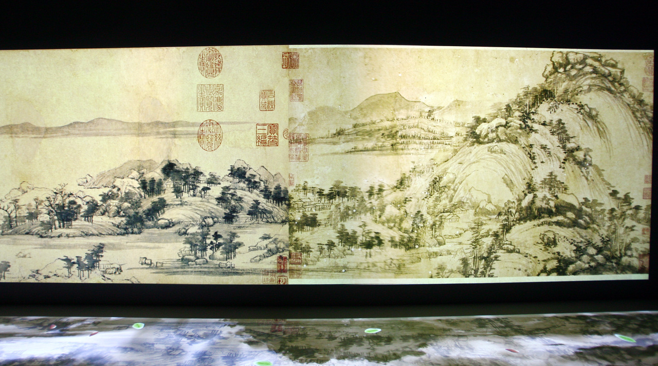 Dwelling in the Fuchun Mountains suffered fire damage in the early Qing Dynasty, separating the main mountain at the beginning section of paper. Today, one piece is kept in the Zhejiang Provincial Museum in Hangzhou, while the other is preserved in the Palace Museum in Taipei.