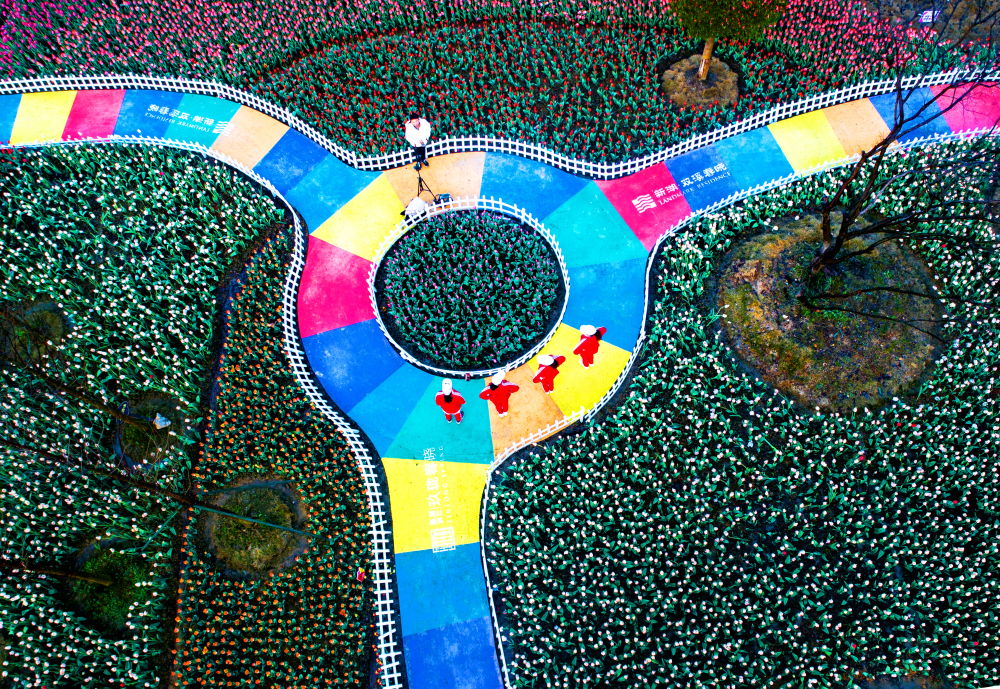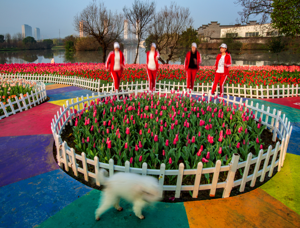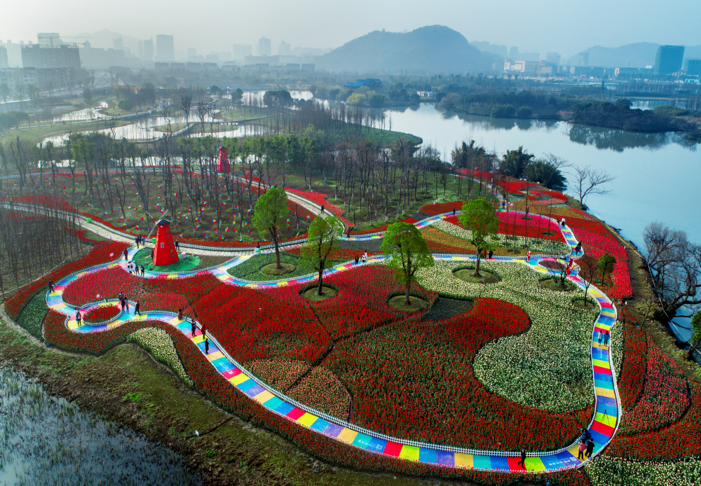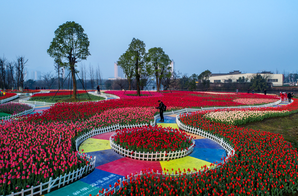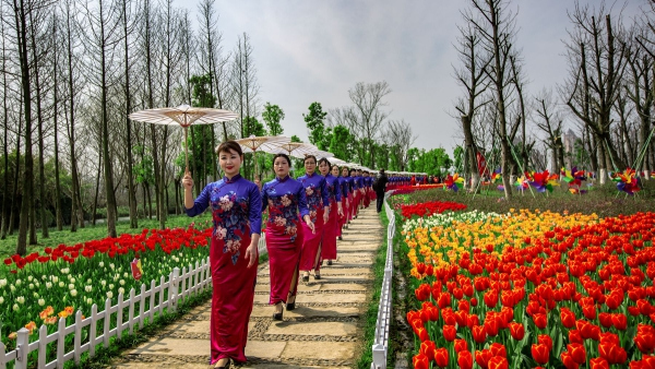 Don't miss seeing 300,000 tulips in peak bloom at Jiulonghui Wetland Park in Wenling City, Zhejiang Province!